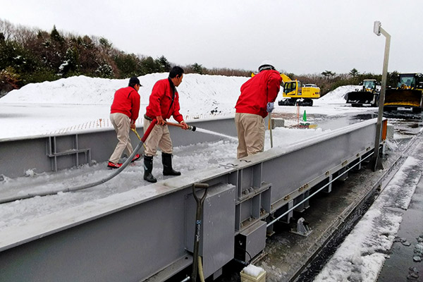 強力な水圧であっという間に雪がなくなりました。